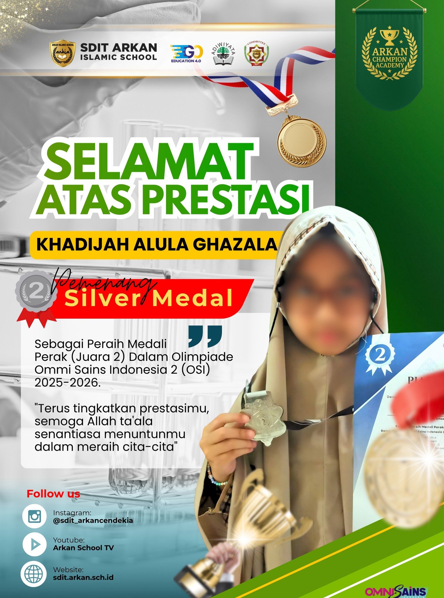 Siswa SDIT Arkan Cendekia tidak hanya unggul dalam bidang akademik, tetapi juga aktif dalam berbagai kegiatan ekstrakurikuler. Prestasi mereka meliputi juara dalam berbagai kompetisi sains, olimpiade, seni, olahraga, dan keagamaan, baik di tingkat lokal maupun nasional."